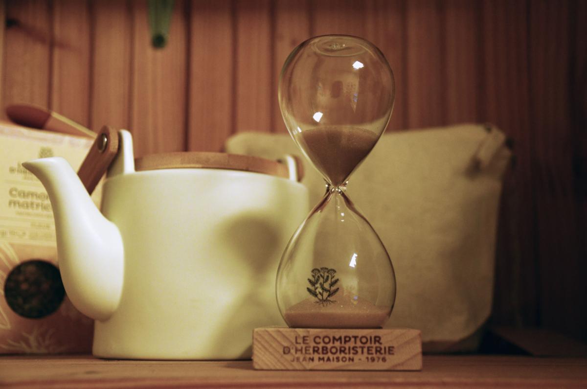 Ce sablier en verre et bois de hêtre floqué Le Comptoir d’Herboristerie mesure avec poésie les 5 minutes parfaites d’infusion, pour sublimer chaque tasse et révéler toute la richesse de nos plantes.